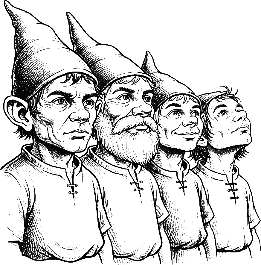 Essa ausência de uma referência dominante abre mais espaço para trabalhar conceitos variados de gnomos em mundos de fantasia sem que isso cause estranhamento. Na seção anterior, já mencionamos duas possíveis origens, mas nem mesmo é necessário estabelecer uma resposta definitiva. Dito isso, convidamos os jogadores de gnomos a refletirem: quais são as crenças do seu personagem sobre o próprio povo?