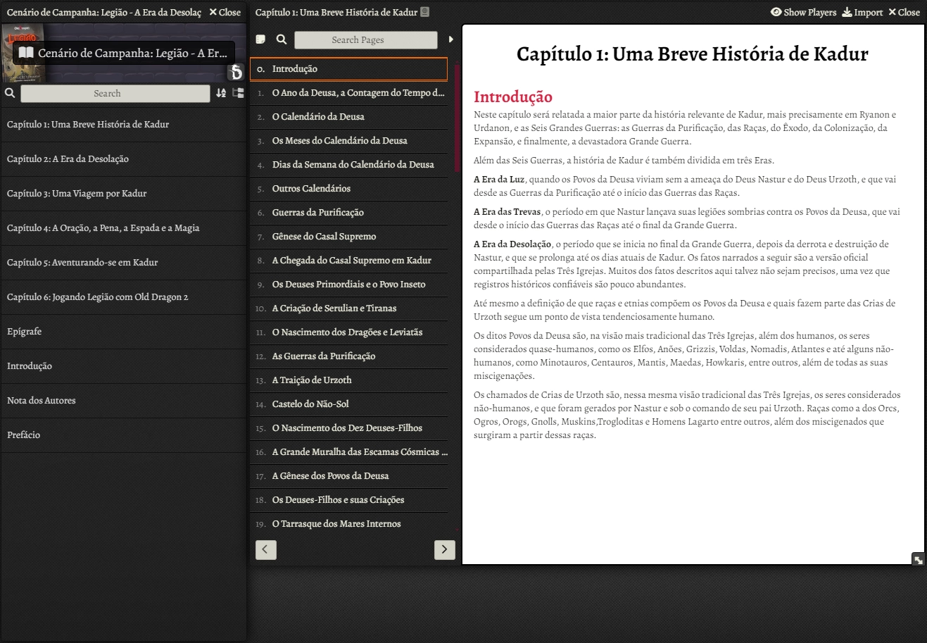 - Cenário de Campanha: Legião - A Era da Desolação livro completo dentro do FoundryVTT