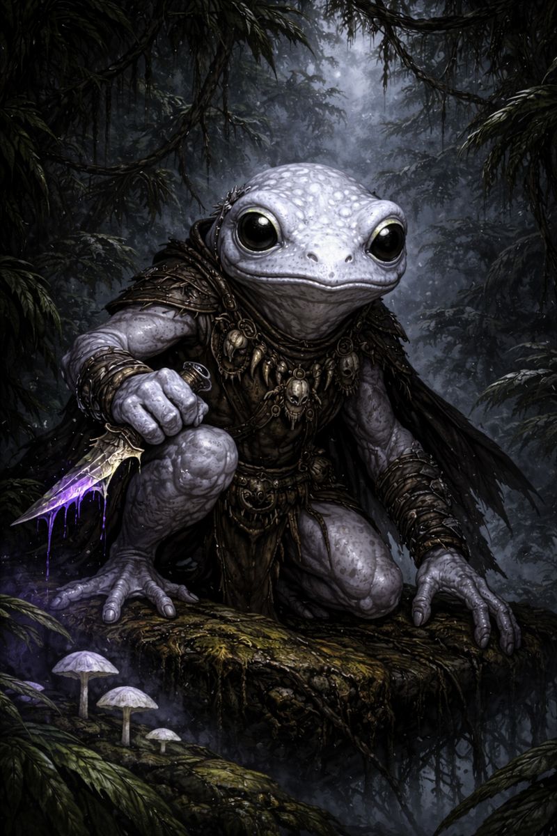 Sua pele venenosa é a mais potente entre os Grungs, capaz de derrubar até guerreiros experientes. Por isso, nenhuma criatura Grung sofre efeitos do veneno de outro Grung incluindo o Branco. Entre o próprio povo, são vistos como predadores, guerreiros, caçadores ou executores, contra outras raças, porém, os enxergam como presságios de morte.
